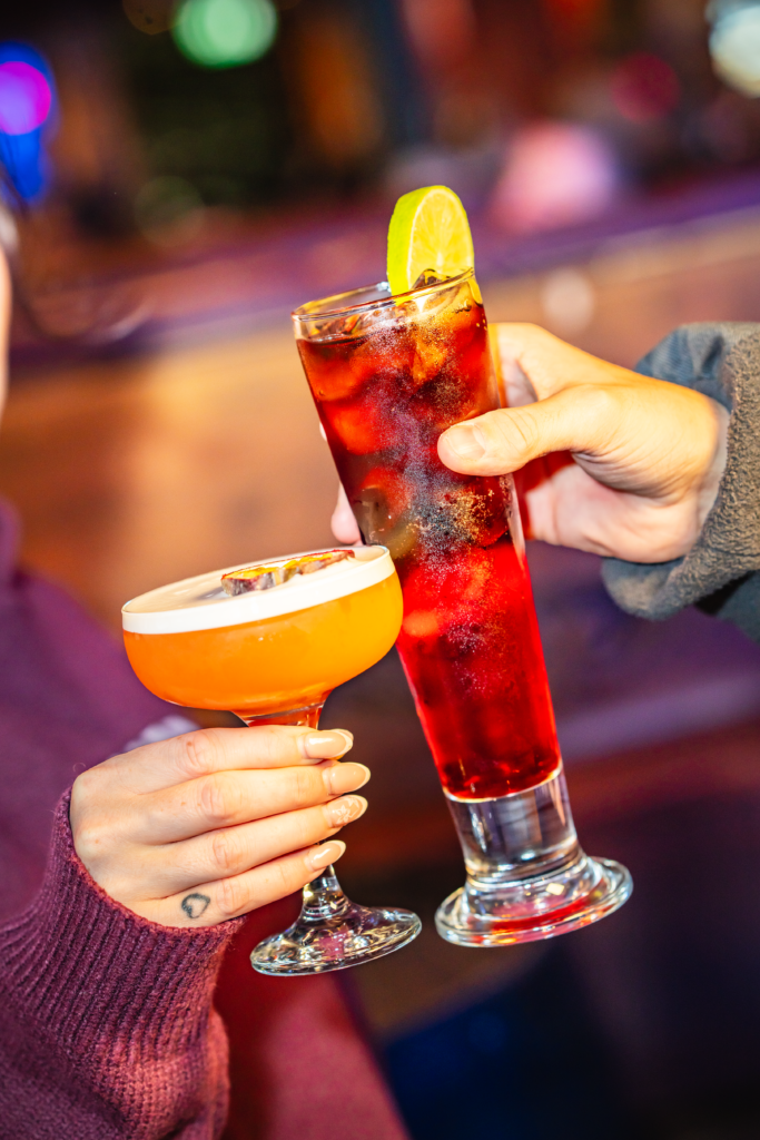 CHERRY SOURZ, DISARONNO, SUGAR SYRUP, GRENADINE, TOPPED WITH COKE ZERO AND GARNISHED WITH A LIME WEDGE